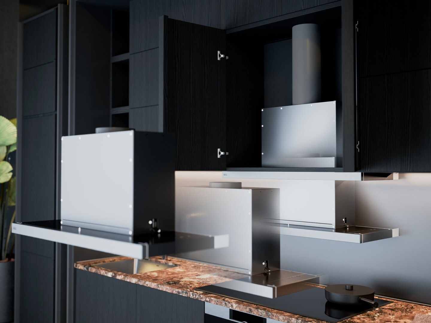 - Izvlečenje robov je priporočljivo, če je napa enake širine kot kuhalna plošča.