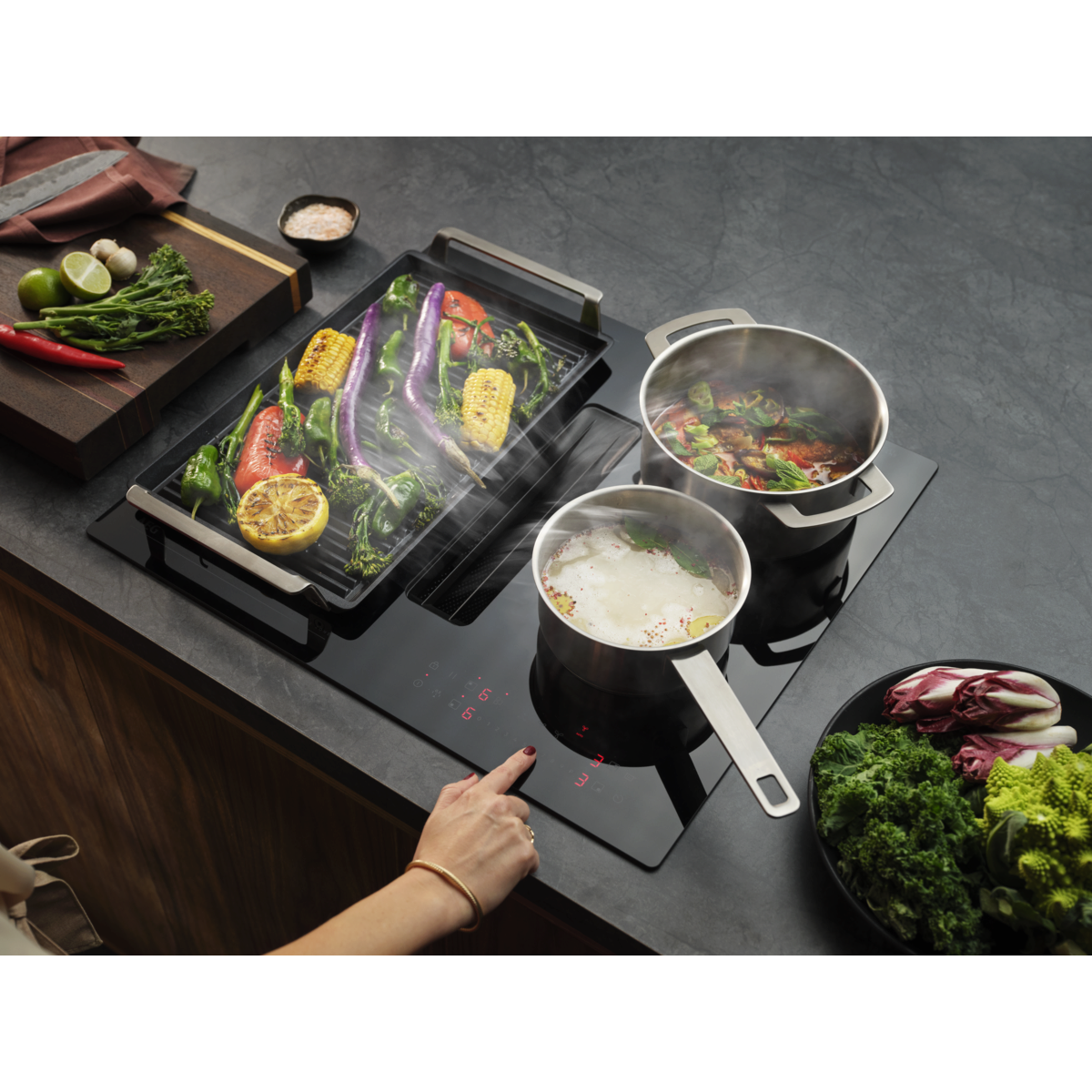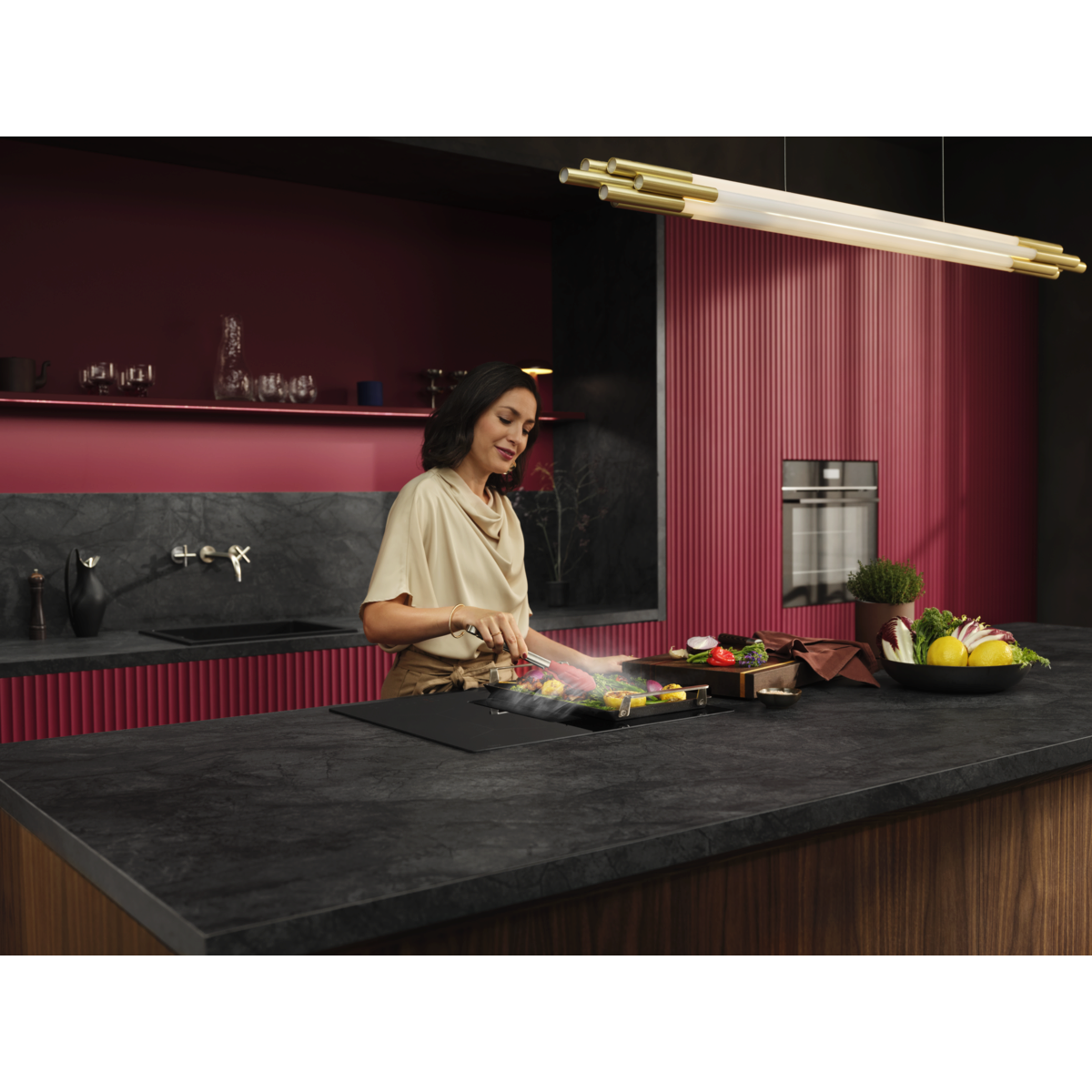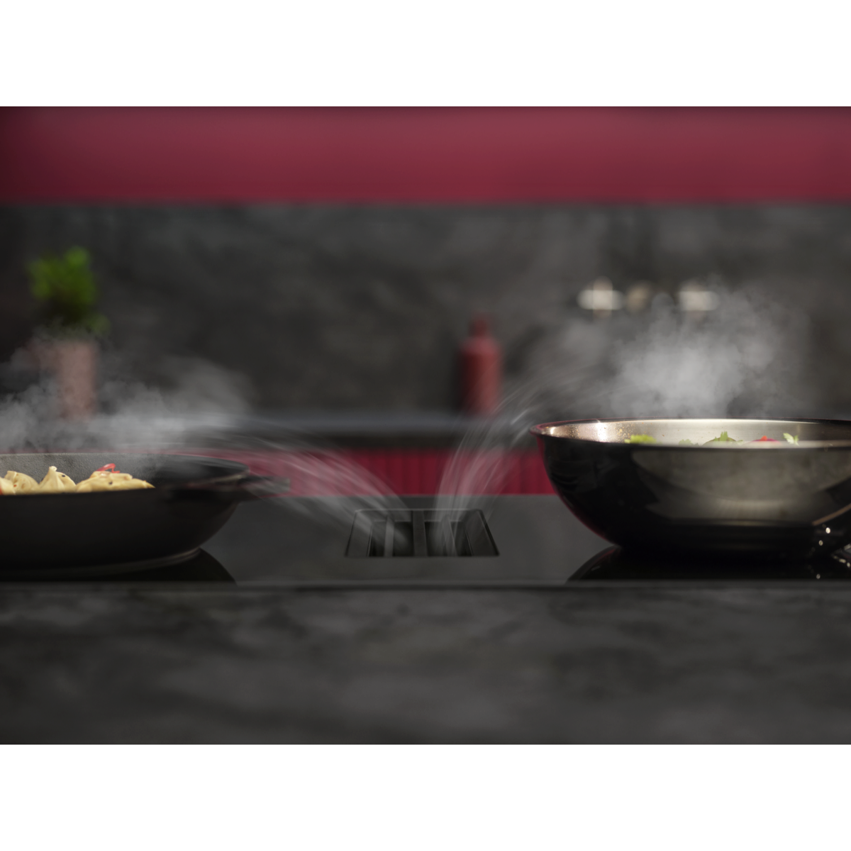 Vaša kuhinja po vaši meri. S kombinacijo hitre in zmogljive indukcijske kuhalne plošče z vgrajeno napo lahko kuhalno ploščo postavite na poljubno mesto.