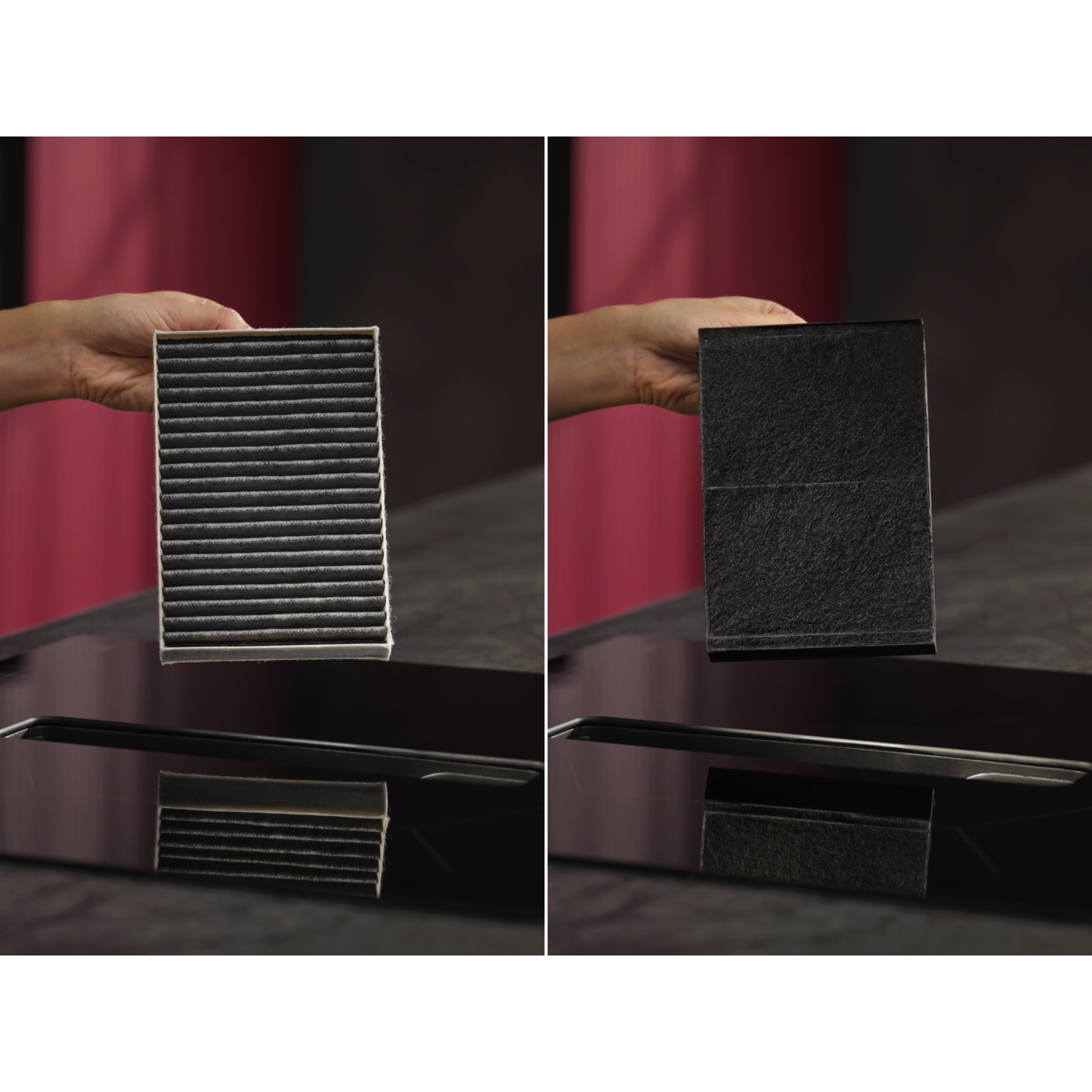 Priloženi standardni ogljikov filter OdourClean zmanjšuje vonjave pri kuhanju. Enostavno ga zamenjajte, da ohranite zmogljivost nape in poskrbite za svež zrak v kuhinji. Zamenjate ga lahko tudi s filtrom OdourClean Plus.*