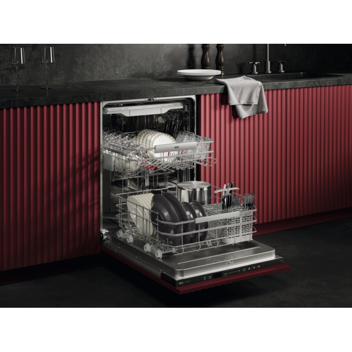 8000 XXL: 5 cm višji v notranjosti, vendar se prilega standardnemu kuhinjskemu pultu. S temeljitim pomivanjem odstrani zapečene ostanke hrane. Vsestranske košare z zložljivimi predeli in držali za kozarce. Visoko učinkovit vodni sistem porabi le 8,4 litra vode.