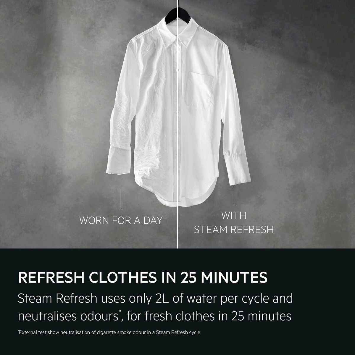 OSVEŽENA OBLAČILA* IN MANJŠA ZMEČKANOST S FUNKCIJO STEAM REFRESH